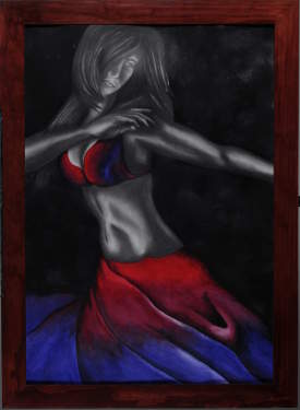 I create as a way to escape reality and go into my own world. A world without problems. A world without pain. My reality is pain. It is crutches, medication, and doctors. The world in my mind is filled with dancers, curved lines, and freeing flight. The movement of the dancer carries her high above the flames of burning pain. The lines curve and pass over the agony so it is not allowed to touch them. Their movements make them free to pass through the smoke into a bright, clear, peaceful meadow. I create my art to capture them and their art, hoping to escape into that peace with them.