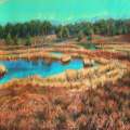My Favourite Park Estate ‘Voorlinden’ at Wassenaar, Zuid-Holland, Netherlands has become my favourite park because it holds everything dear to me: a classic mansion from the 1920s, a museum of modern art with an interesting collection. Last but not least there is a forest surrounding the main buildings. There are also wide meadows in the front and towards the sea a forest chesnuts and oaks followed by pine trees dune up. From the highest point one can look over Meyendel and watch the oil tankers in the North Sea almost sail over treelines. In this respect it reminds me to the hills around Nijmegen where I grew up. Maybe I like elevations in the landscape so much because we have so few of them here in the low lands. Rendering I tried to convey the feel of the vast quantity of trunks here and there intersected by blue and green segments and to avoid rendering individual segments of leafs and branches. Obviously this principle is inspired by Cezanne.The result however is a mo
